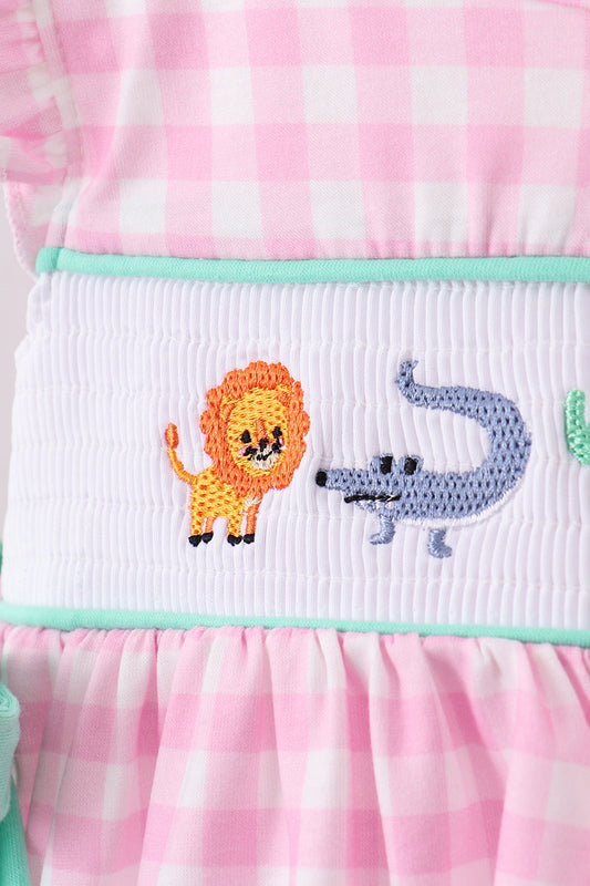 Pink zoo smocked ruffle bloomer set