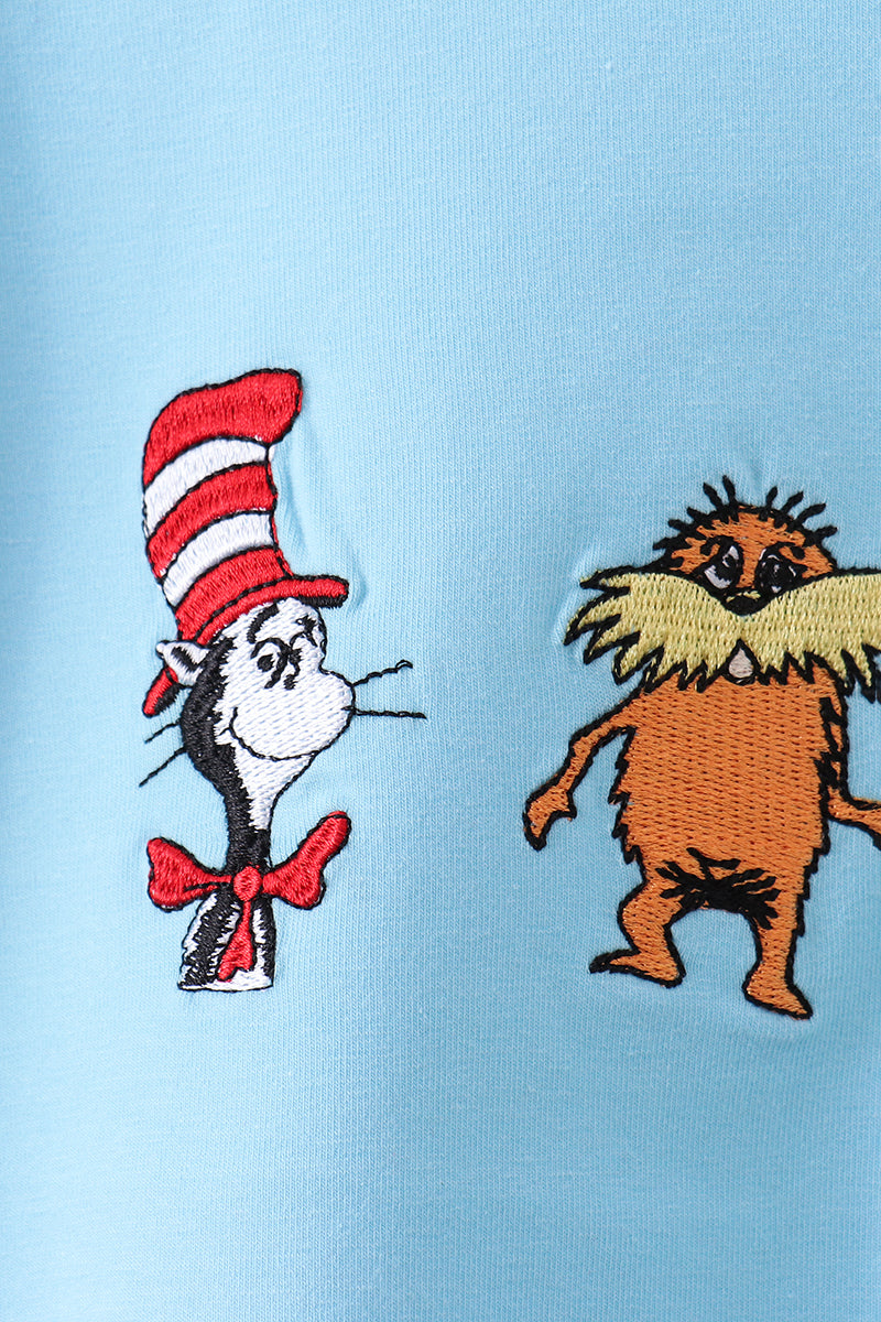 Blue character embroidery top
