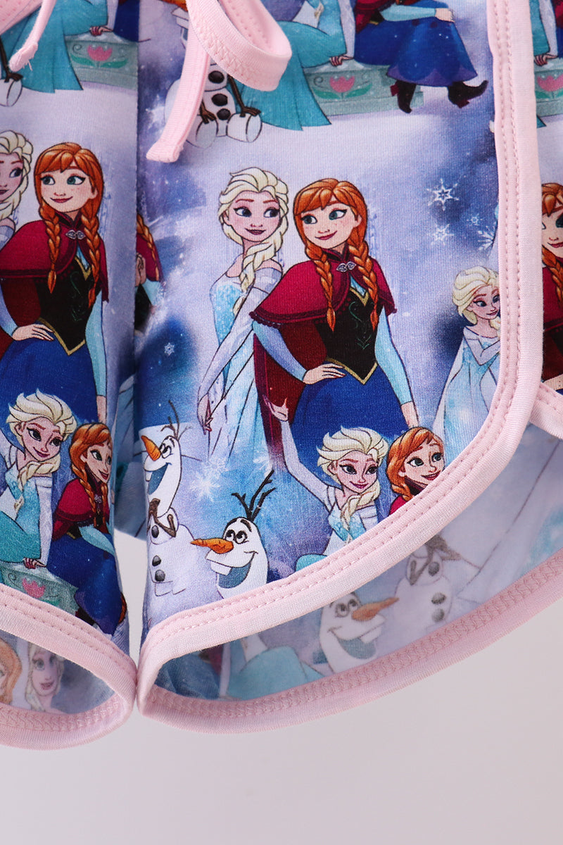 Stay cool and comfy with this playful blue frozen print bamboo shorts set! Crafted from soft, breathable bamboo fabric, these shorts keep you feeling fresh all day long. The whimsical frozen-inspired print adds a fun pop of personality to your casual wardrobe. Perfect for lounging, beach days, or laid-back adventures. Bamboo's natural moisture-wicking properties mean you'll stay dry and cozy, no matter the season. Grab your set today and embrace comfort with style!