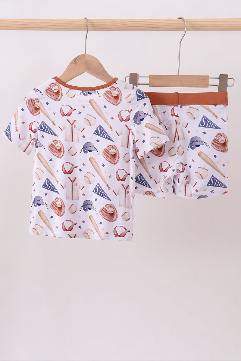 Brown baseball bamboo pajama set