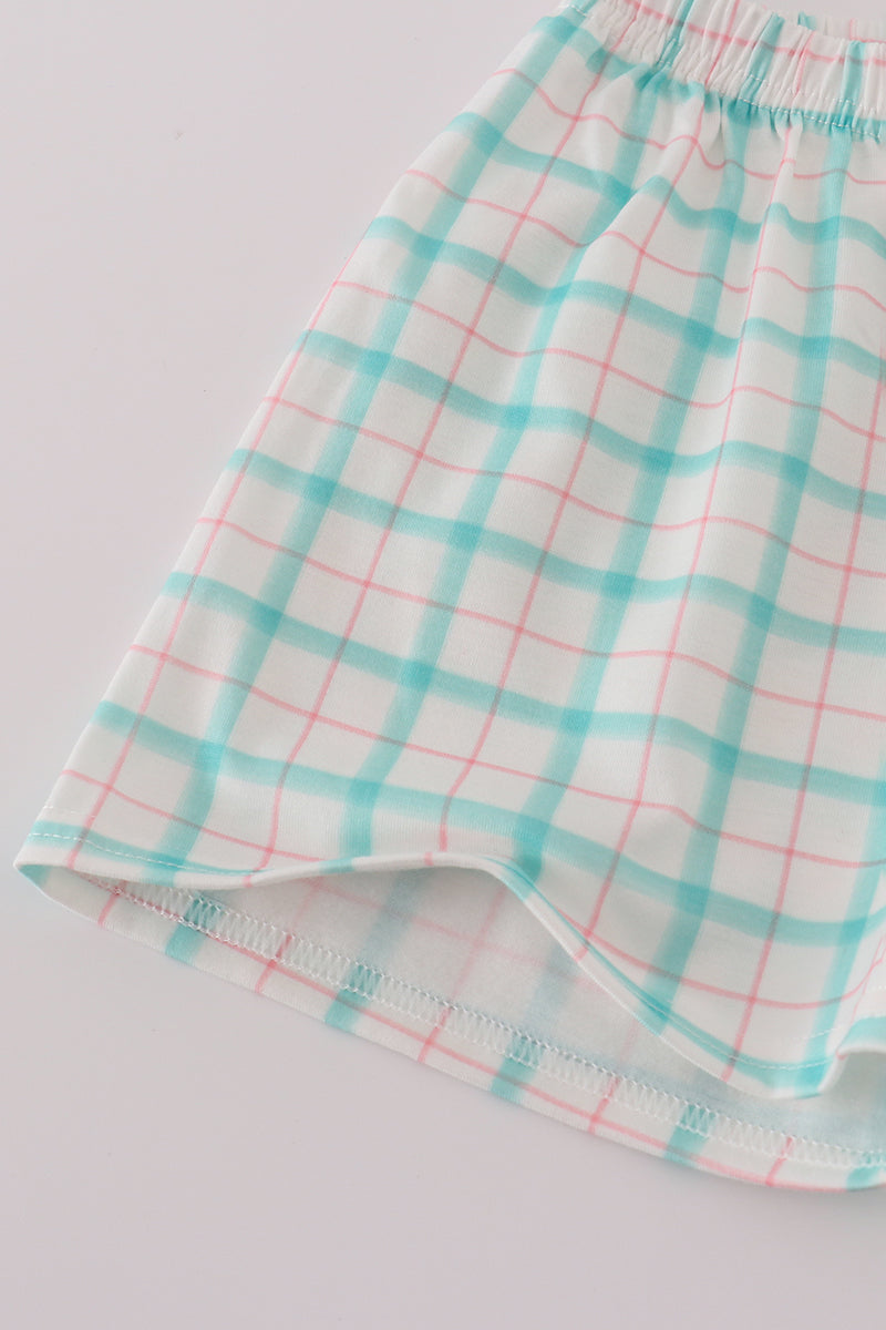 Green marine embroidery smocked shorts set