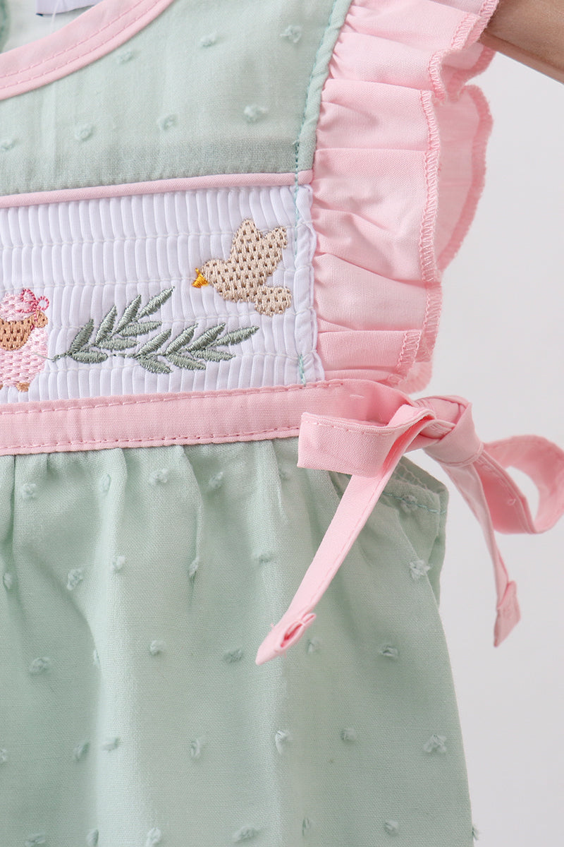 Green swiss dot cross sheep ruffle bubble