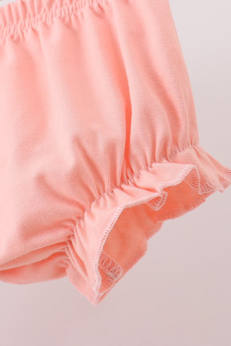 Pink floral bow embroidery bloomer set