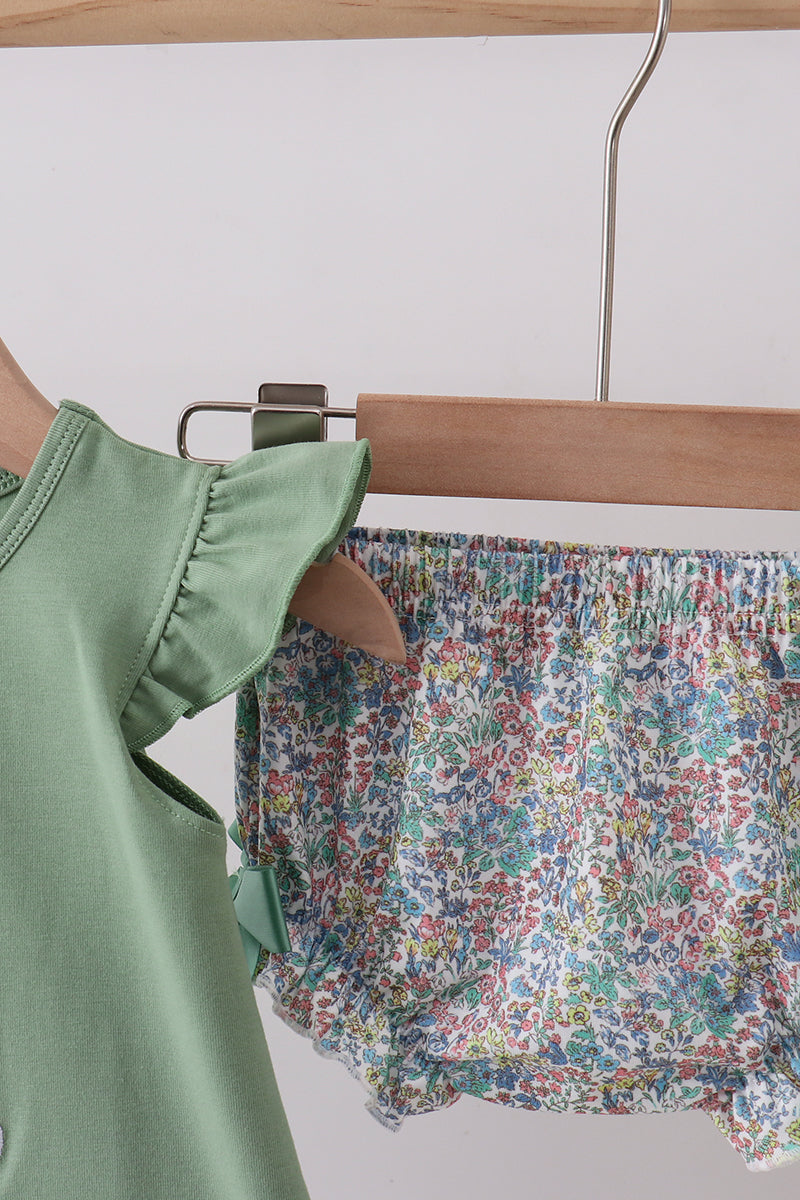 Hop into adorable style with this charming sage bunny applique bloomer set! Perfect for little ones who love whimsical details, this two-piece ensemble features sweet bunny appliqués that bring personality to playtime. The soft, sage-toned palette pairs beautifully with any wardrobe, while the comfortable bloomer silhouette ensures all-day wear. Ideal for casual outings, photo sessions, or cozy days at home. A delightful choice for parents seeking playful, quality pieces that celebrate childhood wonder.