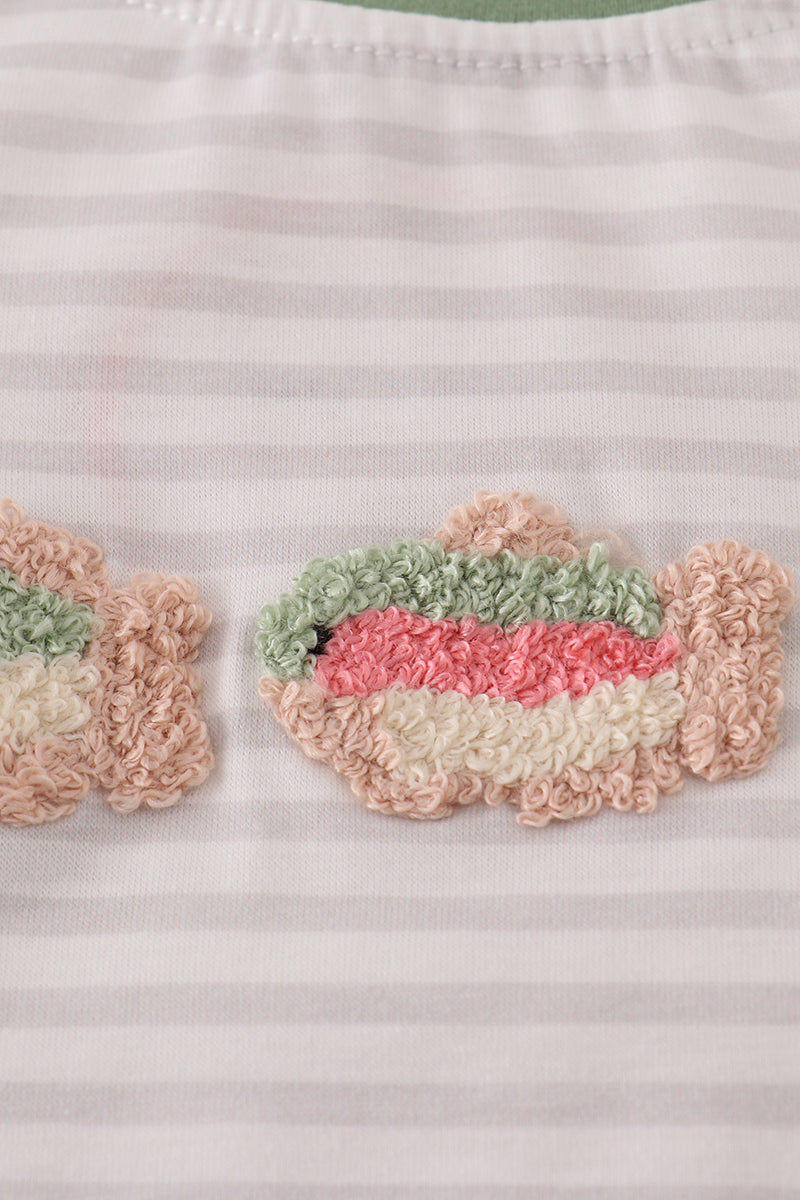 Dive into cozy nights with the Sage Fish French Knot Stripe Pajama Set! Featuring charming fish-inspired stripes and a unique French knot texture, this playful set brings fun and comfort together. Perfect for lounging or dreaming, it adds a splash of whimsy to your bedtime routine.